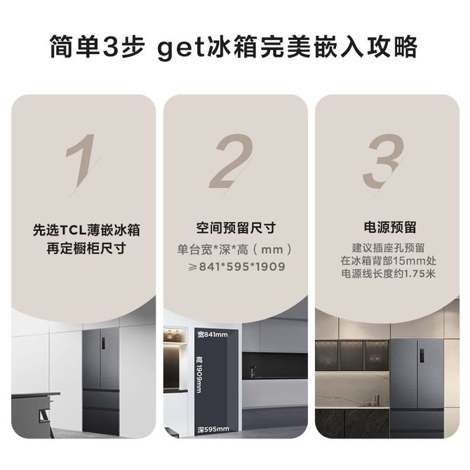 TCL 469升T9法式四门58cm超薄嵌入式冰箱 杀菌除味双循环 风冷无霜一级能效双变频家用养鲜冰箱 R469T9-DQ 多点离子杀菌净味、底部散热、58cm深度 兑换价格 234800 里程 会员卡别 终身白金卡 白金卡 金卡 银卡 普通卡 儿童卡 服务 由 存悦商贸 发货并提供售后 颜色: 灰色 购买数量: 件 库存件 配送地址: 立即购买 加入购物车 成功添加到购物车 关闭 购物车共有 种商品 总金额为: