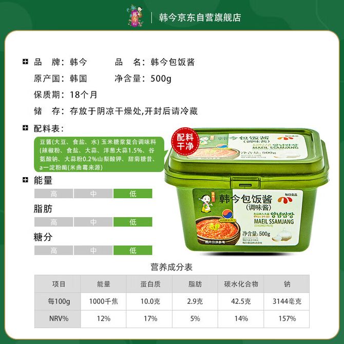 韩今包饭酱500g
