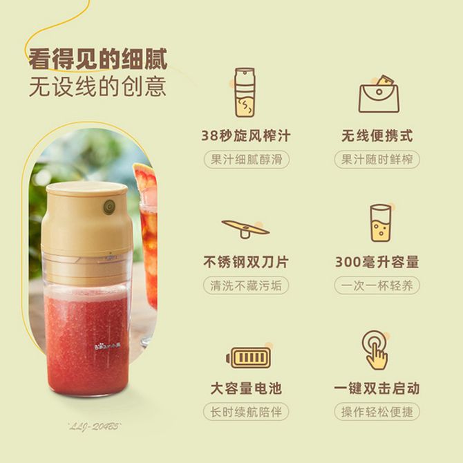 小熊/Bear 300ML便携式榨汁杯家用水果小型充电迷你榨汁杯料理机多功能迷你随行杯 无线便携式 一键双击启动 不锈钢双刀片 兑换价格 4300 里程 会员卡别 终身白金卡 白金卡 金卡 银卡 普通卡 儿童卡 服务 由 北京致诚博雅贸易有限公司 发货并提供售后 颜色: 其他 购买数量: 件 库存件 配送地址: 立即购买 加入购物车 成功添加到购物车 关闭 购物车共有 种商品 总金额为: 组合销售 产品介绍 产品规格 售后服务 产品咨询 发现好货 卡屋KAWU 绞肉机2.3L家用电动碎肉机PY-37930一副刀片 3300 里程 小熊/Bear 绞肉机家用绞馅机碎肉机电动多功能料理搅拌打肉饺子肉馅蒜蓉机切碎机QSJ-D03W5 4000 里程 小熊/Bear 绞肉机家用QSJ-E03K6 绞馅机 碎肉机 电动多功能料理蒜蓉机 3400 里程 苏泊尔(SUPOR) 绞肉机家用多功能电动碎肉机料理机 辅食肉馅机 蔬菜机 大容量 1.75L JR20-B175 3000 里程 卡屋kawu 蒜蓉器多功能电动无线蒜泥机 1700 里程