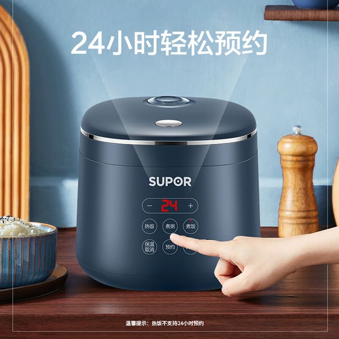 苏泊尔/Supor 电饭煲 精控火候系统 24小时预约定时 可拆卸内盖 2L小容量电饭煲 SF20FC45 2L容量;陶晶内胆;24h预约; 兑换价格 11600 里程 会员卡别 终身白金卡 白金卡 金卡 银卡 普通卡 儿童卡 服务 由 小枫叶专营店 发货并提供售后 颜色: 蓝色 购买数量: 件 库存件 配送地址: 立即购买 加入购物车 成功添加到购物车 关闭 购物车共有 种商品 总金额为: 组合销售 产品介绍 产品规格 售后服务 产品咨询 发现好货 苏泊尔(SUPOR) 电饭煲电饭锅4L大容量 不粘内胆4-6个人前置大屏面板24小时预约上蒸下煮多功能家用智能SF40FC0063 7700 里程 美菱/MELNG 电饭煲3L触控式预约定时MF-LC3005 4400 里程 美的(Midea) 电饭煲 家用3L智能预约多功能电饭锅小型1-4人煮饭锅智能 白色 MB-FB30M161 7800 里程 康佳/Konka 迷你电饭煲小电饭锅2L容量智能温控12小时预约煮饭煮粥锅 4800 里程 美的/Midea 电饭煲电饭锅3-4个人家用4L大容量聚能釜金属机身大火力米饭锅【升级焖香阀】RE417 8700 里程