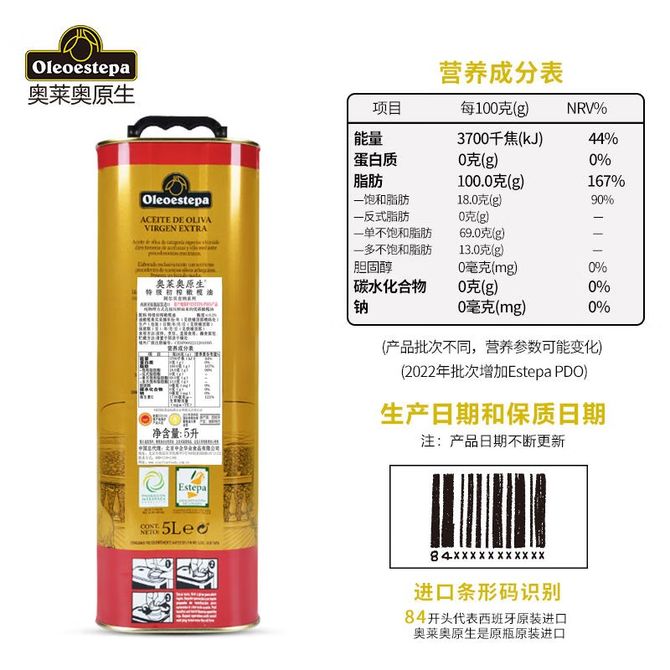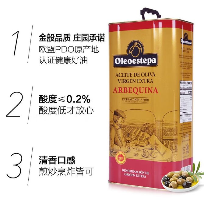 奥莱奥原生 阿尔贝吉纳系列EstepaPDO特级初榨橄榄油5L铁听装西班牙原装进口食用油