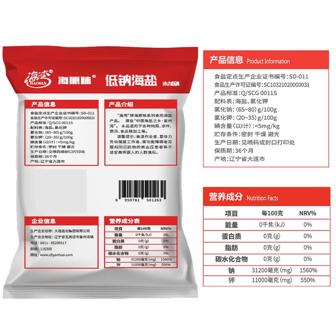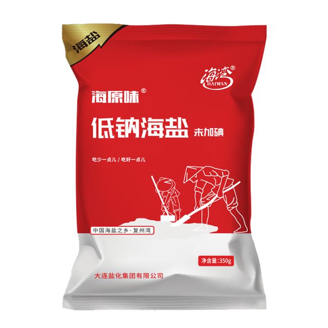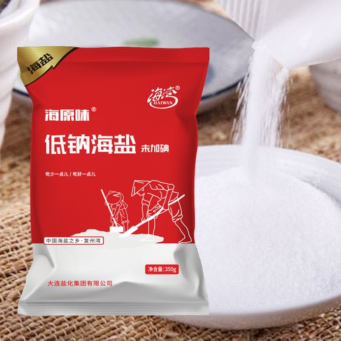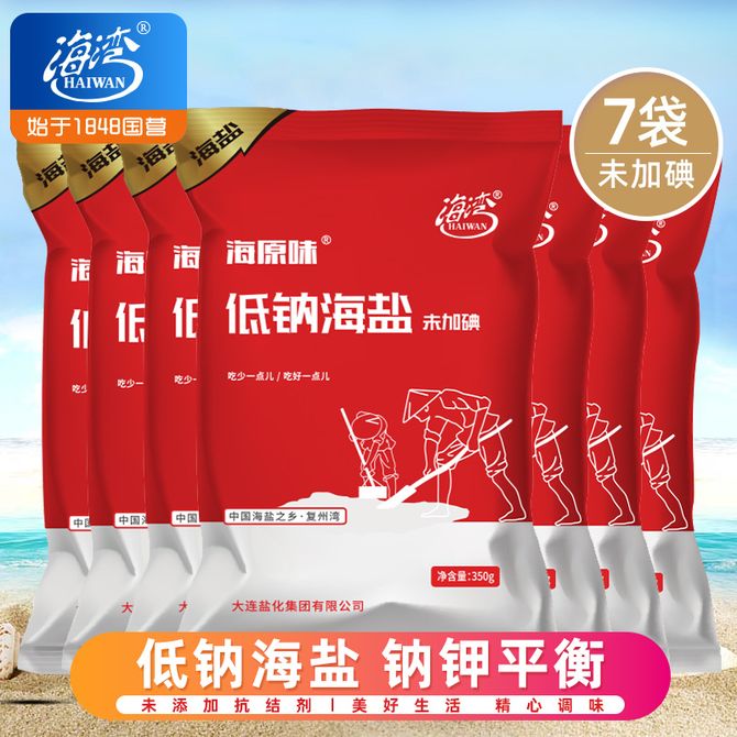 海湾 低钠盐天然海盐无碘低钠食用盐无抗结剂的食盐家用钾盐350g*7