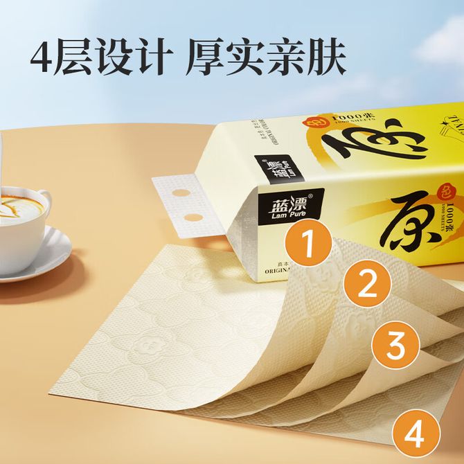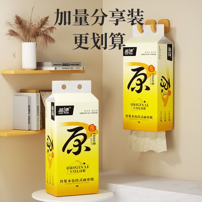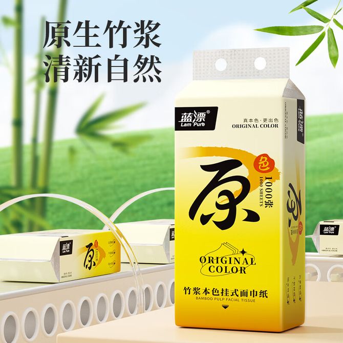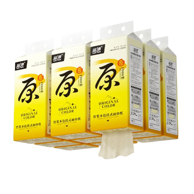 蓝漂 本色挂式抽纸1000张4层加厚加大面巾纸餐巾纸卫生纸擦手纸 (1000张4层*12提) 【整箱囤货】 正品包邮