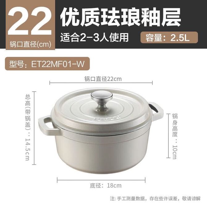 苏泊尔(SUPOR) 家用珐琅锅22cm炖锅 焖烧锅铸铁锅陶瓷锅砂汤锅 ET22MF01W松露白 2.8L容量珐琅锅铸铁炖锅 兑换价格 22200 里程 会员卡别 终身白金卡 白金卡 金卡 银卡 普通卡 儿童卡 服务 由 众生缘(江苏)互联网科技有限公司 发货并提供售后 颜色: 其他 购买数量: 件 库存件 配送地址: 立即购买 加入购物车 成功添加到购物车 关闭 购物车共有 种商品 总金额为: