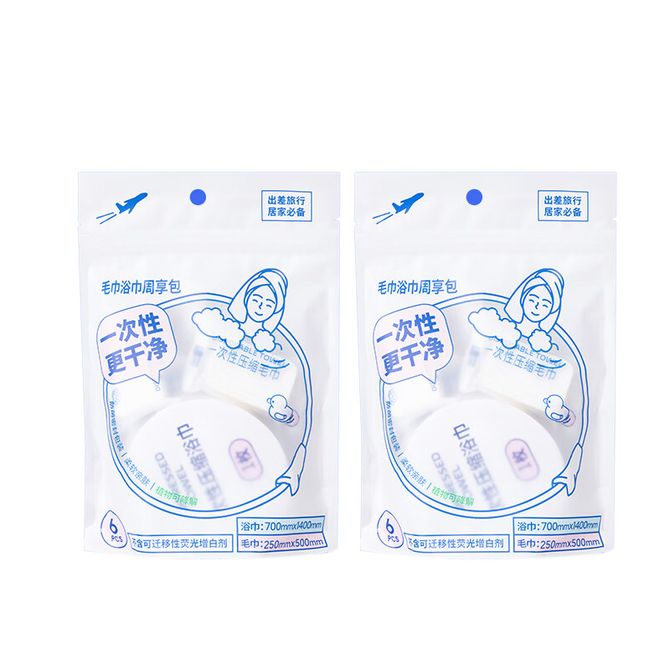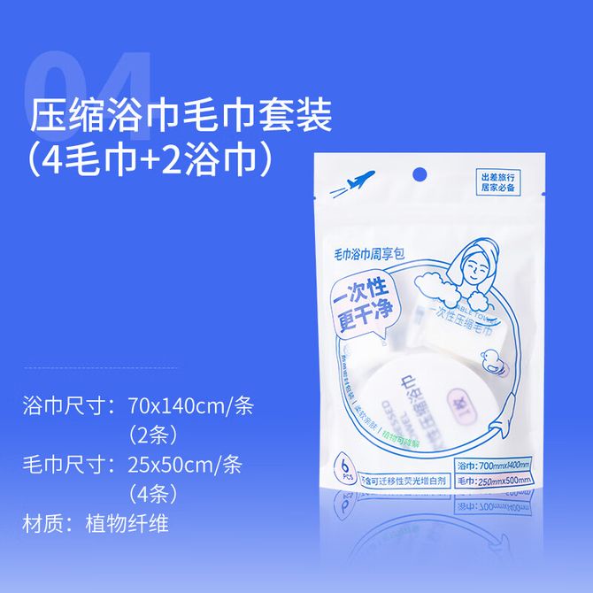 压缩浴巾毛巾套装(4毛巾+2浴巾)2包装