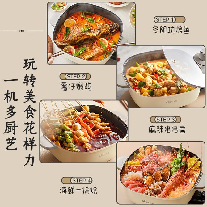 小熊/Bear 电火锅6L 电煮锅 家用电炒锅 炒菜火锅专用锅电热锅宿舍电锅一体多功能锅火锅 D-HGD60P3 2000W猛火大燃力,不粘餐后易清洗,6L大容量分享,耐用不易腐蚀 兑换价格 6100 里程 会员卡别 终身白金卡 白金卡 金卡 银卡 普通卡 儿童卡 服务 由 广西桂福礼供应链管理有限公司 发货并提供售后 颜色: 米白色 购买数量: 件 库存件 配送地址: 立即购买 加入购物车 成功添加到购物车 关闭 购物车共有 种商品 总金额为: 组合销售 产品介绍 产品规格 售后服务 产品咨询 发现好货 苏泊尔(SUPOR)空气炸锅 家用多功能4.2L大容量 烤箱薯条机 无油烟电炸锅 大功率 无油低脂煎炸锅KJ42D811 7800 里程 美的/Midea 空气炸锅 家用5升可视炸锅金属内腔体微蒸汽多功能智能双旋控温电炸锅 KZE5089 10900 里程 奥克斯/AUX 空气炸锅5L电炸锅多功能大容量无油电炸锅空气炸锅机械款 4.5L 机械款 AUX-3002M 复古绿 6500 里程 奥克斯 电火锅 电炒锅 电煮锅 火锅锅 电锅一体锅 家用多功能料理烤肉电热锅 多用途锅大容量 无笼款 5L 4800 里程 苏泊尔(SUPOR)多功能锅料理锅电火锅多用途电煮锅不粘电热锅家用电炒锅方形烤盘煎烤锅JD3424D08-150 YL 13000 里程