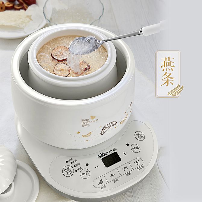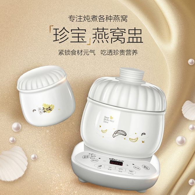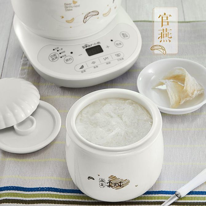 小熊/Bear 燕窝炖盅 炖燕窝专用锅隔水炖电炖锅陶瓷家用燕窝机迷你0.6升小煲汤养生锅 D-DZB06R1 内外珍贵高白瓷,定时恒温泡发,4类燕窝炖法,三层瓷盖锁鲜,可预约定时 兑换价格 11700 里程 会员卡别 终身白金卡 白金卡 金卡 银卡 普通卡 儿童卡 服务 由 广西桂福礼供应链管理有限公司 发货并提供售后 颜色: 白色 购买数量: 件 库存件 配送地址: 立即购买 加入购物车 成功添加到购物车 关闭 购物车共有 种商品 总金额为: 组合销售 产品介绍 产品规格 售后服务 产品咨询 发现好货 小熊/Bear 电炖锅1-2人小炖锅煮粥锅智能预约定时煲汤锅炖汤锅燕窝炖盅 4400 里程 苏泊尔(SUPOR) 电火锅家用不粘煎涮炖煮多功能4L大容量一体式大火力电煮锅不粘煎涮炖煮多功能料理锅 H40YK757 5700 里程 西屋/Westinghouse 多功能电煮锅电炖锅1.6L一锅多能WFB16A 11600 里程 苏泊尔(SUPOR) 电火锅 宿舍小电锅学生寝室一体泡面小火锅 多功能锅涮肉涮菜 1.7L 【 单锅】H17YK489 3000 里程 小熊(Bear)电炖锅电炖盅煮粥神器煲汤锅炖汤锅婴儿煮粥锅熬粥燕窝炖盅DDG-E15K2 4800 里程