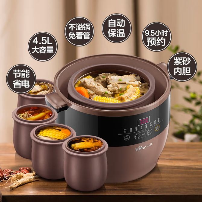 小熊/Bear 电炖锅隔水炖盅全自动紫砂锅大容量紫砂内胆煲汤煮粥炖汤预约定时4.5升 D-DZB45Z1 紫砂隔水炖,一盅五胆,7大滋养菜单,两种保温模式,长效定时预约,全程免看管 兑换价格 12200 里程 会员卡别 终身白金卡 白金卡 金卡 银卡 普通卡 儿童卡 服务 由 广西桂福礼供应链管理有限公司 发货并提供售后 颜色: 其他 购买数量: 件 库存件 配送地址: 立即购买 加入购物车 成功添加到购物车 关闭 购物车共有 种商品 总金额为: