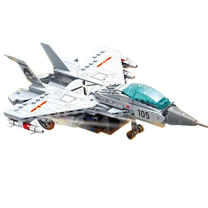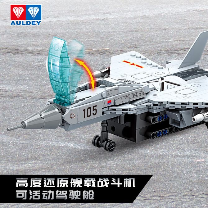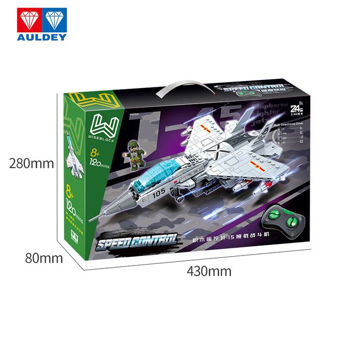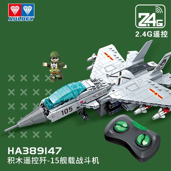 奥迪双钻 积木遥控歼15舰载战斗机积木拼装男孩军事飞机模型