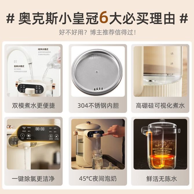 奥克斯/AUX 电热水瓶 触控面板 高硼硅玻璃水壶多段保温烧水器2.5L家用开水壶 HX-8568 可视化烧水/高硼硅玻璃/三模式煮水/多段保温安全童锁 兑换价格 9600 里程 会员卡别 终身白金卡 白金卡 金卡 银卡 普通卡 儿童卡 服务 由 存悦商贸 发货并提供售后 颜色: 白色 购买数量: 件 库存件 配送地址: 立即购买 加入购物车 成功添加到购物车 关闭 购物车共有 种商品 总金额为: 组合销售 产品介绍 产品规格 售后服务 产品咨询 发现好货 苏泊尔(SUPOR)电水壶 1.7L 不锈钢/YL SW-17S13A 5700 里程 志高/Chigo 电水壶烧水壶1.8L大容量电热水壶双层防烫自动断电家用烧水开水壶不锈钢 电水壶 DC-A18F 1900 里程 小熊/Bear 电水壶家用烧水壶 不锈钢自动断电恒温热水壶保温一体电热水壶1.5L容量 3500 里程 小熊/Bear 烧水壶电水壶热水壶电热水壶开水壶304不锈钢内胆双层防烫1.5L大容量ZDH-Q15U8 3000 里程 志高(CHIGO) 电水壶1.8L大容量烧水壶家用热水壶开水壶DC-A18F 1900 里程
