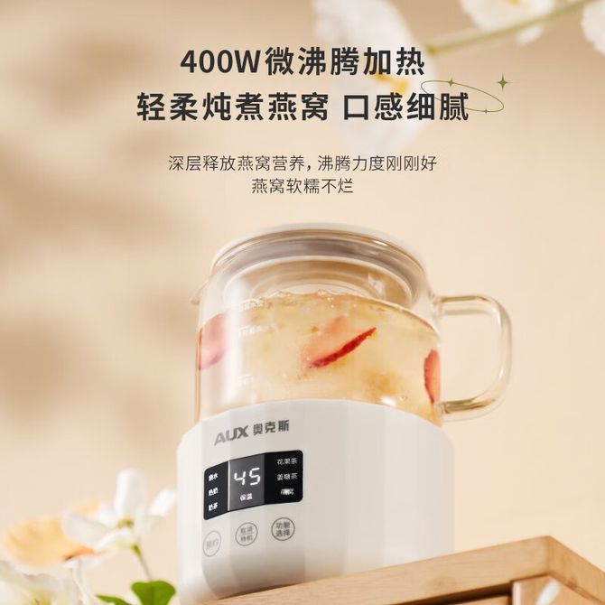 奥克斯/AUX 迷你养生壶养生杯 电炖杯电热杯煮花茶壶烧水壶 全玻璃杯体煮茶器 HX-S0512 0.4L迷你容量!轻音密煮!蒸煮双用模式!分体式设计! 兑换价格 6500 里程 会员卡别 终身白金卡 白金卡 金卡 银卡 普通卡 儿童卡 服务 由 存悦商贸 发货并提供售后 颜色: 白色 购买数量: 件 库存件 配送地址: 立即购买 加入购物车 成功添加到购物车 关闭 购物车共有 种商品 总金额为: 组合销售 产品介绍 产品规格 售后服务 产品咨询 发现好货 九阳/Joyoung 养生壶1.5L茶具电茶壶煮茶壶花茶壶玻璃煮茶器煎药壶中药锅药膳电水壶烧水壶 3900 里程 九阳/Joyoung 养生壶迷你玻璃花茶壶煮茶器 12大功能11档温度 电水壶热水壶烧水壶 1.5L DGD1506BQ 3900 里程 美的/Midea 养生壶 1.5L家用多功能小型全自动办公室烧水壶加厚玻璃煮茶热水壶 MK-YS15P201 4200 里程 美的/Midea 养生壶 1.5L家用养生壶全自动玻璃烧水壶24h预约烧水壶12小时防干烧保护智能恒温 MK-YS15P202 3700 里程 美的/Midea 养生壶 1.5L全自动电热水壶 24h预约12小时智能恒温 14大功能11档控温 花茶壶煮茶器MK-Y12Q 3500 里程