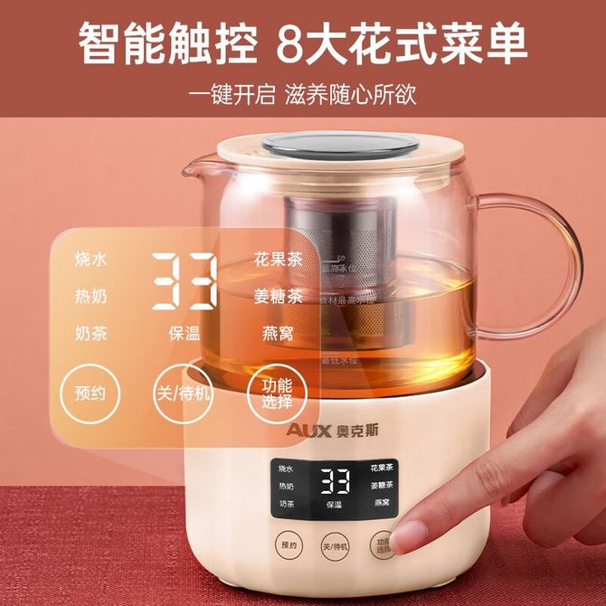 组合销售 产品介绍 产品规格 售后服务 产品咨询 发现好货 九阳/Joyoung 养生壶1.5L茶具电茶壶煮茶壶花茶壶玻璃煮茶器煎药壶中药锅药膳电水壶烧水壶 3900 里程 九阳/Joyoung 养生壶迷你玻璃花茶壶煮茶器 12大功能11档温度 电水壶热水壶烧水壶 1.5L DGD1506BQ 3900 里程 美的/Midea 养生壶 1.5L家用多功能小型全自动办公室烧水壶加厚玻璃煮茶热水壶 MK-YS15P201 4200 里程 美的/Midea 养生壶 1.5L家用养生壶全自动玻璃烧水壶24h预约烧水壶12小时防干烧保护智能恒温 MK-YS15P202 3700 里程 美的/Midea 养生壶 1.5L全自动电热水壶 24h预约12小时智能恒温 14大功能11档控温 花茶壶煮茶器MK-Y12Q 3500 里程