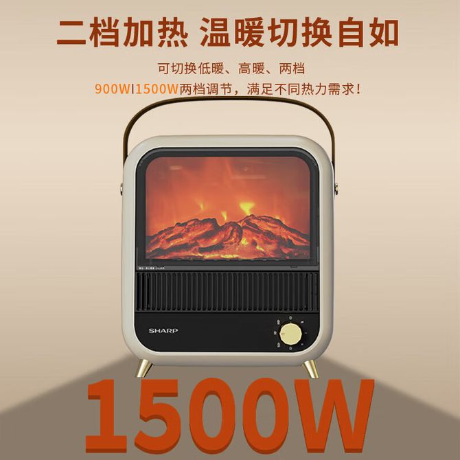 夏普/Sharp 取暖器家用暖风机速热电暖风浴室热风机复古3D仿真炭火节能电暖气HX-AM123B-T