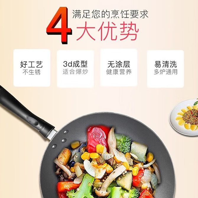 组合销售 产品介绍 产品规格 售后服务 产品咨询 发现好货 苏泊尔 炫彩易洁不粘炒锅 NC30F4 8700 里程 拜格(Bayco) 平底炒锅煎蛋锅平底锅锤纹小铁锅BG50137【28cm】 1900 里程 德世朗(DESLON) 无涂层炒锅铁锅可视化盖龙鳞0氟精铁不粘炒锅32cm炒菜锅炉灶通用 黑色 3500 里程 炊大皇/Cookerking 炒锅 30cm+盖子 无涂层聚油爆炒精铁锅炒菜锅电磁炉燃气通用锅具精铁锅 3900 里程 九阳(Joyoung)炒锅家用32cm无涂层铸铁炒菜锅可立盖CF32C-CJ232-A 4400 里程