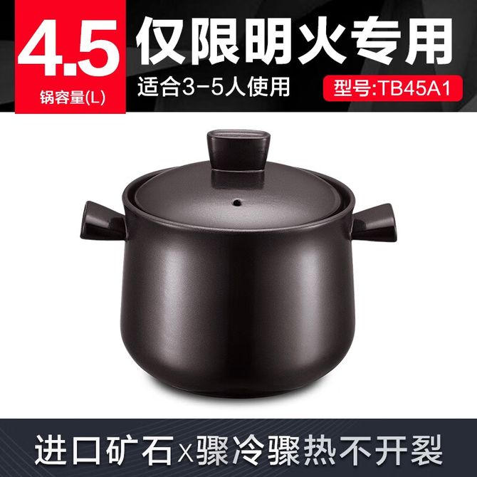 苏泊尔/Supor 砂锅煲汤炖锅 经典款4.5L陶瓷煲养生煲耐高温不开裂TB45A1 砂锅煲汤炖锅 经典款4.5L陶瓷煲养生煲耐高温不开裂TB45A1 兑换价格 10400 里程 会员卡别 终身白金卡 白金卡 金卡 银卡 普通卡 儿童卡 商品已下架 1. 请联系卖家咨询 2. 逛逛海籍厨具生活专营店选择其他商品 组合销售 产品介绍 产品规格 售后服务 产品咨询 发现好货 荣事达/Royalstar 煲锅 砂锅煲汤熬药煮粥焖饭砂锅陶瓷炖汤沙锅家用养生汤锅瓦煲瓦罐4.6L 3900 里程 爱仕达(ASD) 煲锅 砂锅煲汤炖锅2.5L陶瓷煲仔饭砂锅燃气灶明火专用 4800 里程 炊大皇/Cookerking 砂锅5L耐高温陶瓷煲多用炖锅汤锅家用养生煲陶瓷锅明火煤燃气灶专用TCXW5002 4400 里程 炊大皇/Cookerking 砂锅 6L耐高温陶瓷煲多用炖锅汤锅 家用养生煲陶瓷锅 明火煤燃气灶专用TCXW6003 5300 里程 苏泊尔(SUPOR) 砂锅煲汤锅炖锅4.5L养生煲耐高温不开裂陶瓷煲EB45MAT01 6000 里程