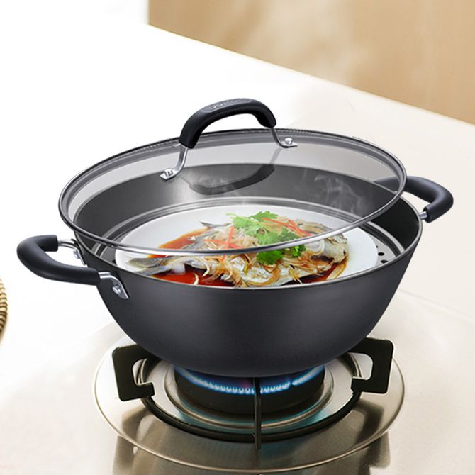 铸铁锅 铸铁双耳无涂层深型大口径炒锅耐磨炒菜锅 燃气电磁炉通用 FC36Y1 双耳大炒锅 36cm