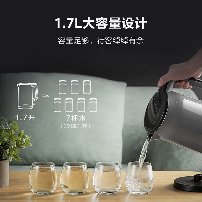 美的/Midea 1.7L电水壶双层壶身防烫316母婴级不锈钢无缝内胆一键55度MK-HP1706 高品质+高颜值内外兼修 兑换价格 6400 里程 会员卡别 终身白金卡 白金卡 金卡 银卡 普通卡 儿童卡 服务 由 普芳家电 发货并提供售后 颜色: 其他 购买数量: 件 库存件 配送地址: 立即购买 加入购物车 成功添加到购物车 关闭 购物车共有 种商品 总金额为: 组合销售 产品介绍 产品规格 售后服务 产品咨询 发现好货 苏泊尔(SUPOR)电水壶 1.7L 不锈钢/YL SW-17S13A 5700 里程 志高/Chigo 电水壶烧水壶1.8L大容量电热水壶双层防烫自动断电家用烧水开水壶不锈钢 电水壶 DC-A18F 1900 里程 小熊/Bear 电水壶家用烧水壶 不锈钢自动断电恒温热水壶保温一体电热水壶1.5L容量 3500 里程 小熊/Bear 烧水壶电水壶热水壶电热水壶开水壶304不锈钢内胆双层防烫1.5L大容量ZDH-Q15U8 3000 里程 志高(CHIGO) 电水壶1.8L大容量烧水壶家用热水壶开水壶DC-A18F 1900 里程