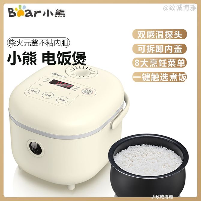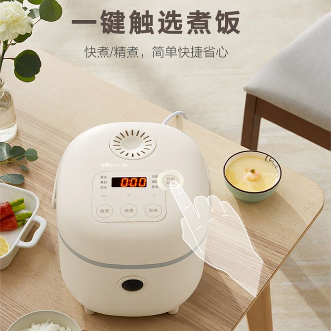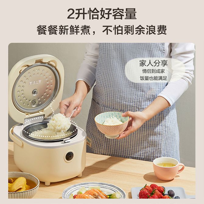 小熊/Bear 电饭煲2L迷你小容量电饭锅智能预约小米粥保温蒸饭器DFBB20-A1 双感温探头 可拆卸内盖 8大烹饪菜单 一键触选煮饭 兑换价格 7800 里程 会员卡别 终身白金卡 白金卡 金卡 银卡 普通卡 儿童卡 服务 由 北京致诚博雅贸易有限公司 发货并提供售后 颜色: 米黄色 购买数量: 件 库存件 配送地址: 立即购买 加入购物车 成功添加到购物车 关闭 购物车共有 种商品 总金额为: 组合销售 产品介绍 产品规格 售后服务 产品咨询 发现好货 苏泊尔(SUPOR) 电饭煲电饭锅4L大容量 不粘内胆4-6个人前置大屏面板24小时预约上蒸下煮多功能家用智能SF40FC0063 8300 里程 奥克斯/AUX 电饭煲3L电饭锅 2-3人小型预约智能电饭煲VK-309F2 5100 里程 苏泊尔(SUPOR) 迷你电饭煲家用电饭锅2-3人3L小容量蓝钻不粘内胆快煮饭功能智能预约小型多功能SF30FC0187 6100 里程 美菱/MELNG 电饭煲3L触控式预约定时MF-LC3005 4400 里程 苏泊尔(SUPOR) 煮饭煮粥智能预约多功能一锅多用小型微压电饭锅30FC0187 7200 里程