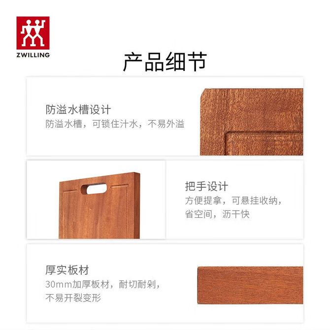双立人(ZWILLING) 乌檀木砧板420*310*30mm(采用整张乌檀木切割而成) 整张乌檀木切割而成,无漆无蜡,无拼接无胶水,天然原木纹理,双面可用,加厚加宽,防溢设计。 兑换价格 20400 里程 会员卡别 终身白金卡 白金卡 金卡 银卡 普通卡 儿童卡 商品已下架 1. 请联系卖家咨询 2. 逛逛潮人厨房选择其他商品 组合销售 产品介绍 产品规格 售后服务 产品咨询 发现好货 Debo 迈克尔双面菜板砧板厨房加厚防滑菜板 DEP-DS425 2000 里程 好管家40CM乌檀木砧板wt004+ZBJ005款 2700 里程 德铂(Debo) 迈克尔双面菜板 厨房砧板 加厚防滑乌檀切菜板 生熟分切菜板 4000 里程 德铂(Debo) 304不锈钢迈克尔双面乌檀木菜板砧板 家用厨房防毒加厚防滑砧板 2200 里程 德铂(Debo) 菜板304不锈钢乌檀木双面菜板防毒加厚多用砧板26.5*40cm DEP-DS425 1900 里程