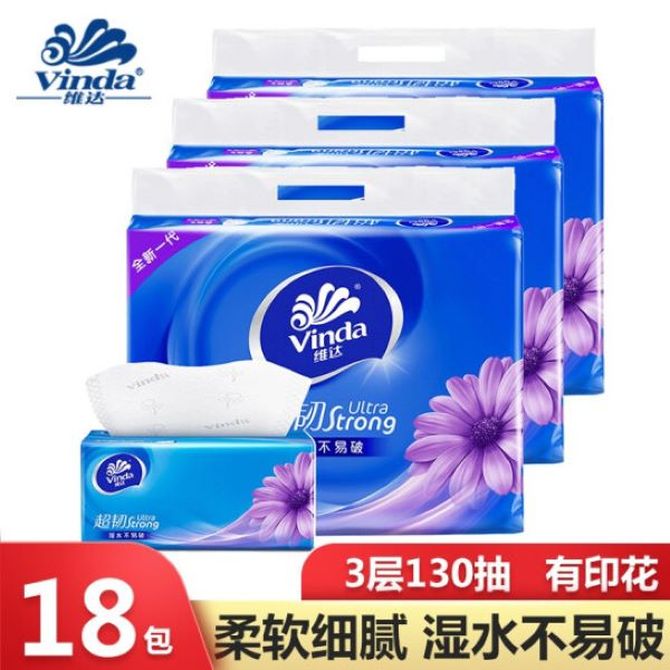 维达 抽纸超韧3层130抽卫生纸巾餐巾纸家庭装面巾压花无香家用纸 下单规格:1提=6包,3提=18包 新老包装随机发货 兑换价格 1100-2200 里程 会员卡别 终身白金卡 白金卡 金卡 银卡 普通卡 儿童卡 服务 由 甜蜜生活馆 发货并提供售后 包装数量: 1提 3提 购买数量: 件 库存件 配送地址: 立即购买 加入购物车 成功添加到购物车 关闭 购物车共有 种商品 总金额为: 组合销售 产品介绍 产品规格 售后服务 产品咨询 发现好货 维达卷纸 卫生纸实惠装厕纸家用厕所纸巾手纸整箱批有芯大卷家庭装 1200-2300 里程 维达 Vinda 卷纸 140g/卷*10卷 蓝色经典3层卫生纸 1300 里程 心相印抽纸 茶语丝享系列 量贩家庭装 3层*100抽*4包(茶香 压花) 1100 里程 心相印 经典系列 二层面巾纸 180抽*6包*1提 1100 里程 维达Vinda 超韧系列抽纸(3层*130抽*6包) 原生木浆卫生餐巾纸婴儿面巾纸 6包优惠装 1100 里程