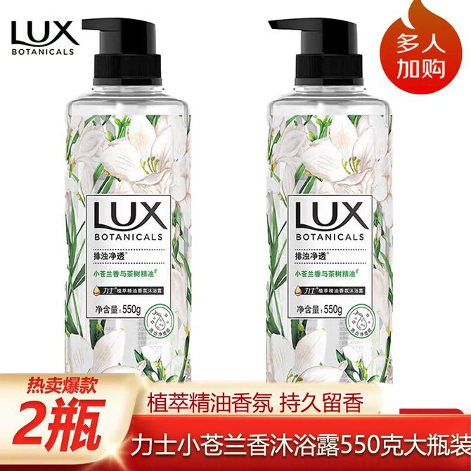 力士/LUX 植萃精油香氛沐浴露 550g*2瓶 共2.2斤 小苍兰香与茶树精油 排浊净透持久留香 植萃系列沐浴露 两瓶装 【新老包装随机发货】持久留香,净透嫩滑 兑换价格 3900 里程 会员卡别 终身白金卡 白金卡 金卡 银卡 普通卡 儿童卡 服务 由 京狮文化生活馆 发货并提供售后 化妆品容量: 组合 购买数量: 件 库存件 配送地址: 立即购买 加入购物车 成功添加到购物车 关闭 购物车共有 种商品 总金额为: 组合销售 产品介绍 产品规格 售后服务 产品咨询 发现好货 可悠然(KUYURA)沐浴露香氛美肌沐浴乳(恬静清香550ml) 3300 里程 舒肤佳/Safeguard 经典净护沐浴露纯白清香360g/720g/1000g 1100-2100 里程 阿道夫(ADOLPH) 香氛沐浴露(水润舒缓)618ml 1500 里程 力士/LUX 沐浴露 恒久嫩肤沐浴乳400g/700g/900g/1000g 1100-1700 里程 蓝月亮 抑菌洗手液 500g*6瓶 芦荟滋润保湿 2900 里程