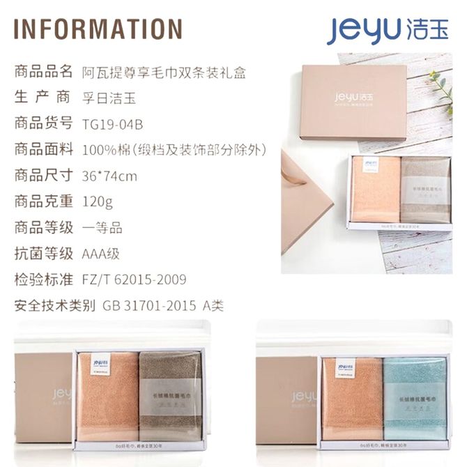 洁玉/jeyu 【2条装】毛巾洗脸巾柔软亲肤抗菌面巾吸水速干阿瓦提超低捻尊享毛巾-粉兰色 规格:36cm*74cm 克重:120g/条 颜色:棕-蓝-粉 兑换价格 4300 里程 会员卡别 终身白金卡 白金卡 金卡 银卡 普通卡 儿童卡 服务 由 奥墩麦(河北)科技有限公司 发货并提供售后 颜色: 天蓝色 购买数量: 件 库存件 配送地址: 立即购买 加入购物车 成功添加到购物车 关闭 购物车共有 种商品 总金额为: 组合销售 产品介绍 产品规格 售后服务 产品咨询 发现好货 洁丽雅(Grace)浴巾毛巾三件套 家用纯棉1浴巾2毛巾 柔软吸水全棉 7254-MY 3000 里程 洁丽雅 抗菌毛巾新疆纯棉洗脸巾长绒棉AAA级纯色两条装 蓝色+粉色(洁丽雅) 1600 里程 洁丽雅毛巾新疆棉毛巾3条装洗脸巾 多种颜色随机发货 1800 里程 洁丽雅 一次性洗脸巾 加厚珍珠纹绵柔巾美容卸妆化妆绵60抽*3包 1800 里程 洁丽雅 Grace 棉柔巾居家差旅便携洁面巾 美容化妆棉 一次性洗脸毛巾2包装 1400 里程