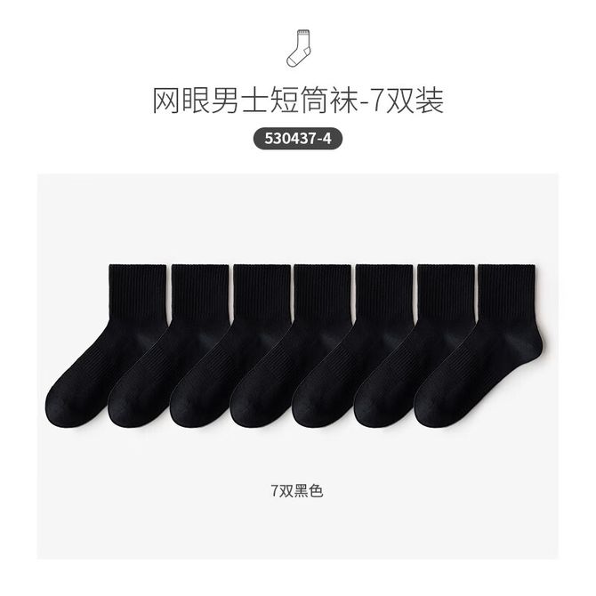 Caramella 卡拉美拉 袜子男棉质运动中短筒袜【网眼男士短筒袜-黑色-7双装-均码】纯新疆棉袜透气吸汗棉短款男士短袜男生运动袜 甄选新疆优质精梳棉,吸气透湿,自由呼吸;采用高弹莱卡纤维,舒适不勒脚,经久耐穿 兑换价格 2200 里程 会员卡别 终身白金卡 白金卡 金卡 银卡 普通卡 儿童卡 商品已下架 1. 请联系卖家咨询 2. 逛逛陈记严选选择其他商品 组合销售 产品介绍 产品规格 售后服务 产品咨询 发现好货 南极人纯棉防臭吸汗中筒男袜-黑色(5双装)N506X203010315 1500 里程 浪莎 袜子男士丝袜夏季薄款透气冰丝男袜中筒袜商务袜子10双装 1300 里程 浪莎袜子男纯棉秋冬运动袜男士袜子全棉吸汗舒适中筒男袜6双冬季 (六色各1 ) 1700 里程 浪莎 纯棉吸汗透气男士棉袜6双装 2200 里程 恒源祥 【10双装】男士袜子夏天纯色袜子吸汗网眼防臭抗菌舒适透气百搭男袜商务休闲棉袜子【混色】 2700 里程