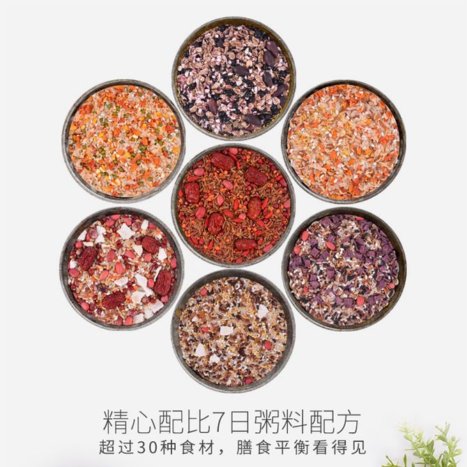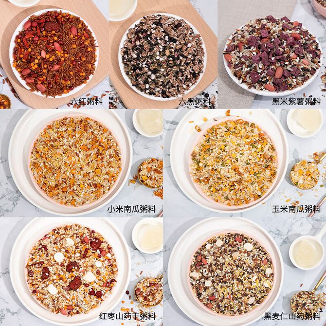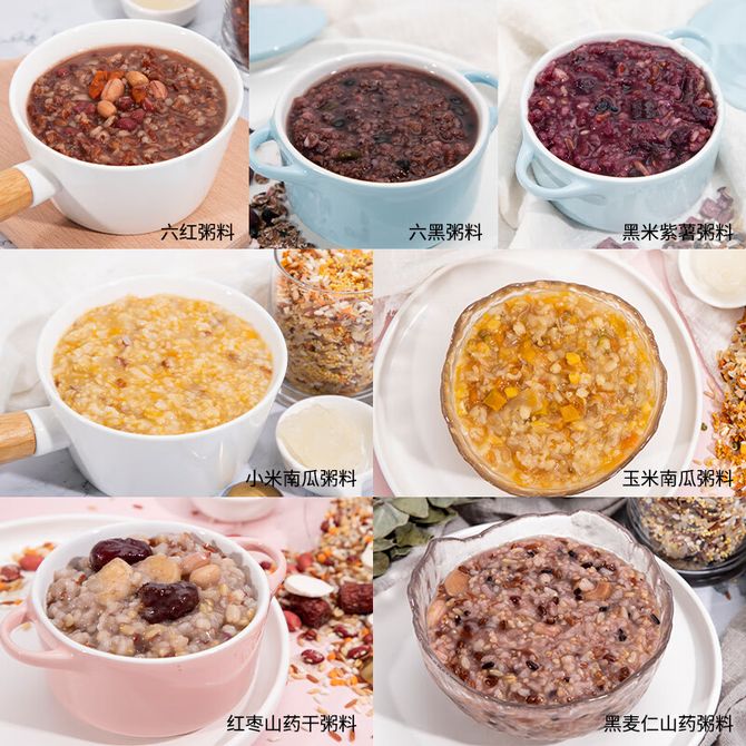 玉米南瓜粥150g+六红粥料150g+六黑粥料150g+黑麦仁山药粥150+红枣山药粥150g+黑米紫薯粥150g+小米南瓜粥150g