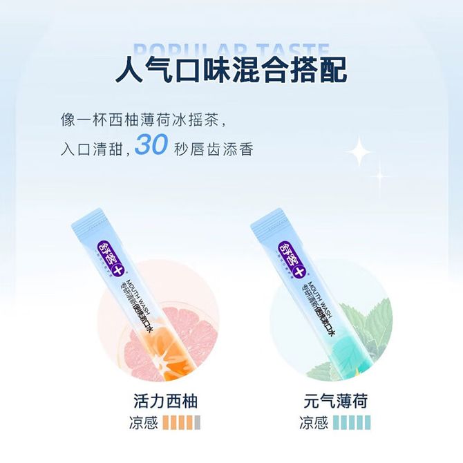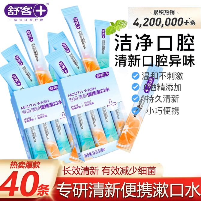 舒客 (Saky)便携条装漱口水组合(活力西柚+元气薄荷)12ml*40条 男女士一次性清新口气持久留香专研清新便携漱口水 长效清新口气,温和不刺激 兑换价格 2600 里程 会员卡别 终身白金卡 白金卡 金卡 银卡 普通卡 儿童卡 服务 由 京狮文化生活馆 发货并提供售后 化妆品容量: 组合 购买数量: 件 库存件 配送地址: 立即购买 加入购物车 成功添加到购物车 关闭 购物车共有 种商品 总金额为: 组合销售 产品介绍 产品规格 售后服务 产品咨询 发现好货 舒客 沁爽清新漱口水(茶爽新)500mL*2大瓶 去口臭温和不辣口无醇涑口液口味含氟 1600 里程 高露洁(Colgate)漱口水250ml*2瓶元气薄荷味 1700 里程 高露洁(Colgate)贝齿鲜果薄荷漱口水500ml×3(新老包装随机发货) 3400 里程 舒客 专效抑菌漱口水500ML*2 清新口气 高效杀菌(不同包装随机) 1400 里程 高露洁/Colgate 漱口水 温和0酒精 500ml单瓶装 茉莉绿茶味 新旧包装随机发 1300 里程