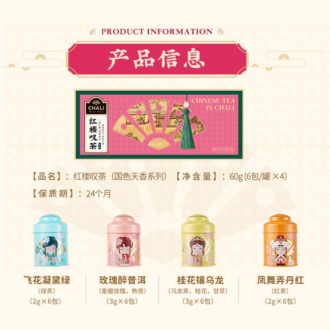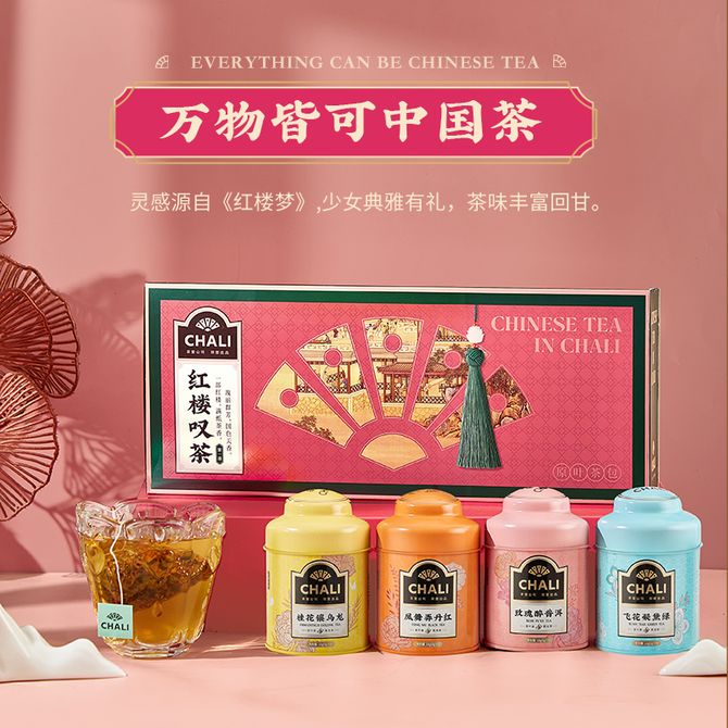 CHALI 红楼叹茶Ⅰ盒装60g 桂花乌龙 绿茶 玫瑰普洱花茶独立茶包