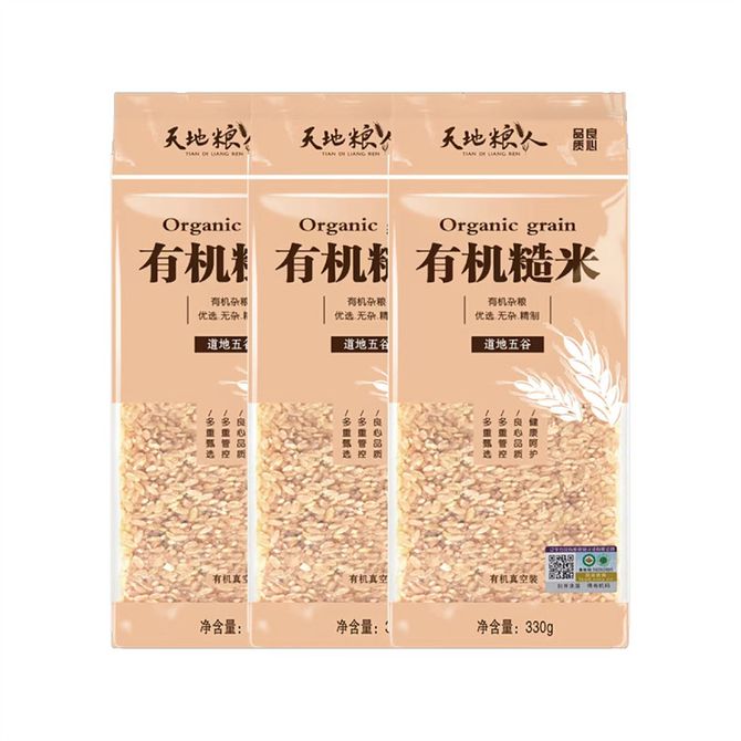 天地粮人TIAN DI LIANG REN 有机糙米330g*3 糙米粗粮饭 健康减脂粗粮米