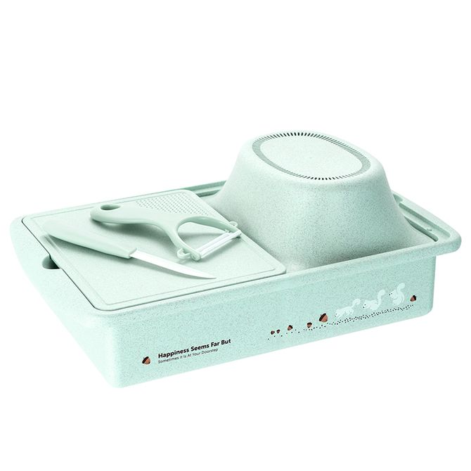 斯内普厨房工具 蔬沥水盒陶瓷瓜刨 材质:PP+小麦秸秆 滤水筛 托盘 陶瓷刀 刮皮器 切菜板