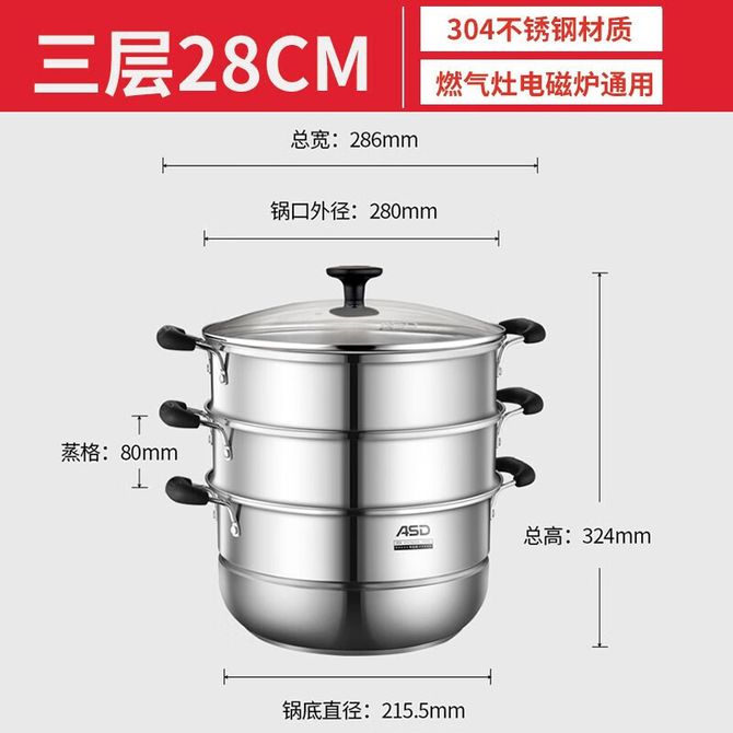 爱仕达(ASD) 蒸锅三层304不锈钢锅身28CM加厚复底电磁炉煤气灶通用ZS28A3WG 蒸锅三层304不锈钢锅身28CM加厚复底电磁炉煤气灶通用ZS28A3WG 兑换价格 7400 里程 会员卡别 终身白金卡 白金卡 金卡 银卡 普通卡 儿童卡 服务 由 林峥厨具专营店 发货并提供售后 颜色: 银色 购买数量: 件 库存件 配送地址: 立即购买 加入购物车 成功添加到购物车 关闭 购物车共有 种商品 总金额为: 组合销售 产品介绍 产品规格 售后服务 产品咨询 发现好货 苏泊尔(SUPOR) 蒸锅不锈钢28cm复底双层SZ28B5蒸鱼蒸馒头蒸馍大蒸锅蒸笼 8700 里程 MAXCOOK 蒸锅 加厚不锈钢汤锅高拱盖蒸鱼锅火锅大容量 燃气灶电磁炉通用 MCZ8597 2层 28cm 3100 里程 拜格双层木柄复底蒸锅32CM304不锈钢BG50093 5300 里程 德铂(Debo)汤锅不锈钢单层蒸锅蒸笼电磁炉两用锅艾琳诺26cm DEP-DS146 2100 里程 德铂(Debo) 科洛姆双层蒸锅不锈钢汤锅20cm不挑炉灶DEP-913 2600 里程