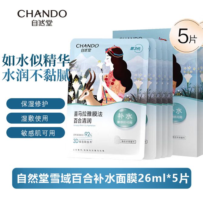 自然堂/Chando 雪域百合补水面膜 26ml*5片 喜马拉雅植物百合清润补水深润保湿面膜 五片装 【该款为5片雪域百合补水面膜26ml,详情共用】轻盈润泽,清爽不粘 兑换价格 1100 里程 会员卡别 终身白金卡 白金卡 金卡 银卡 普通卡 儿童卡 服务 由 京狮文化生活馆 发货并提供售后 面膜规格: 盒 购买数量: 件 库存件 配送地址: 立即购买 加入购物车 成功添加到购物车 关闭 购物车共有 种商品 总金额为: