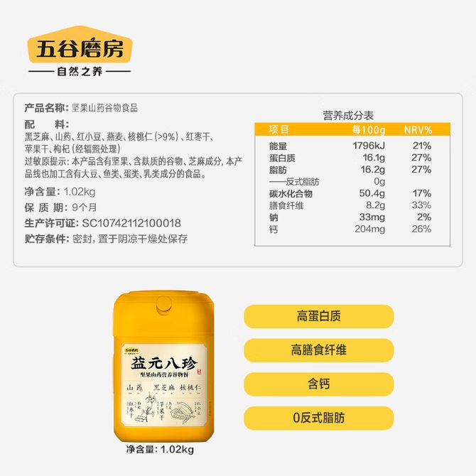 五谷磨房 自然之养 养胃益元八珍粉黑芝麻核桃粉五谷粉营养早餐代餐粉1020g 周一到周五工作日发货 兑换价格 7400 里程 会员卡别 终身白金卡 白金卡 金卡 银卡 普通卡 儿童卡 商品已下架 1. 请联系卖家咨询 2. 逛逛空盒子食品店铺选择其他商品 组合销售 产品介绍 产品规格 售后服务 产品咨询 发现好货 阴山优麦即食纯燕麦片 全胚芽裸燕麦 营养早餐谷物 膳食纤维 1000g 罐装 2400 里程 燕之坊 红豆薏米枸杞粉 红小豆赤小豆薏米薏仁代餐粉 500g 低卡饱腹 3500 里程 穗格氏SHEGURZ 纯燕麦片无添糖澳洲燕麦片1.52kg营养早餐懒人即食谷物冲饮 1200 里程 燕之坊 黑八宝450g 1300 里程 西麦 即食燕麦片1000g桶装营养早餐谷物代餐无额外添加蔗糖 1400 里程