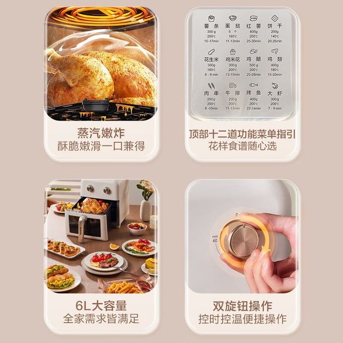 苏泊尔(SUPOR) 可视空气炸锅6L多功能蒸汽嫩炸1500W大火力电炸锅KJ60D76 苏泊尔(SUPOR)可视空气炸锅6L 兑换价格 14400 里程 会员卡别 终身白金卡 白金卡 金卡 银卡 普通卡 儿童卡 服务 由 优米酷家电生活馆 发货并提供售后 颜色: 米白色 购买数量: 件 库存件 配送地址: 立即购买 加入购物车 成功添加到购物车 关闭 购物车共有 种商品 总金额为: