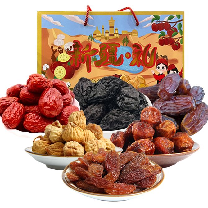 骏枣500g*1、西梅干500g*1、椰枣500g*1、无花果500g*1、杏干500g*1、红香妃500g*1