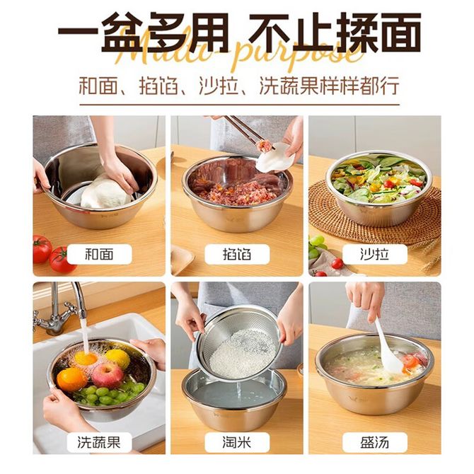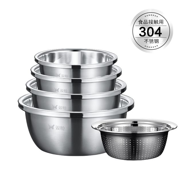 双枪(Suncha) 和面盆家用厨房加厚打蛋洗菜沥水篮漏盆汤盆铁盆 【五件套】实盆24~30cm+漏盆26cm