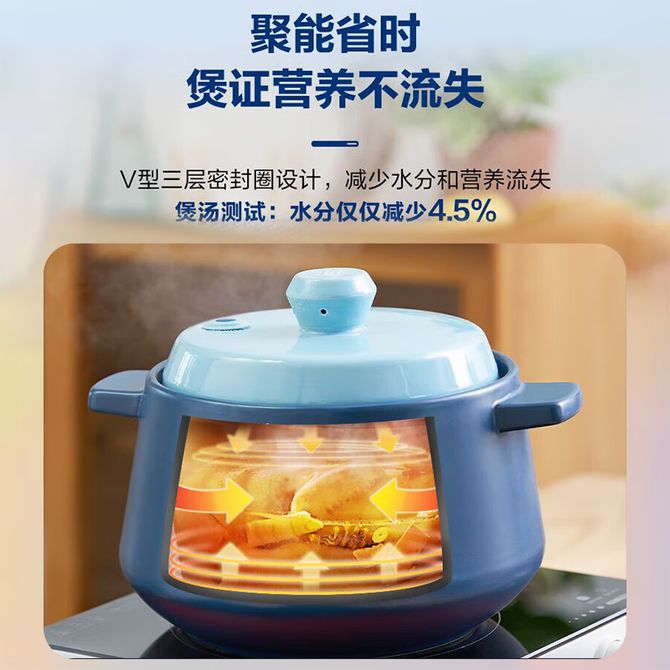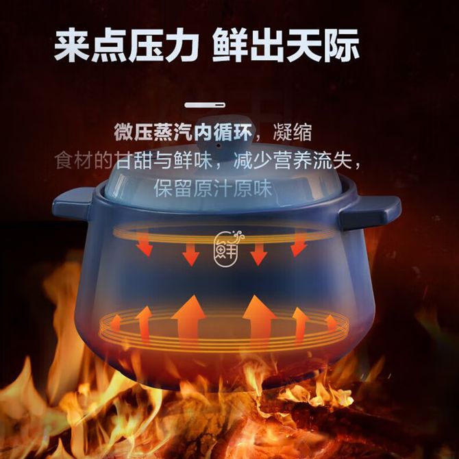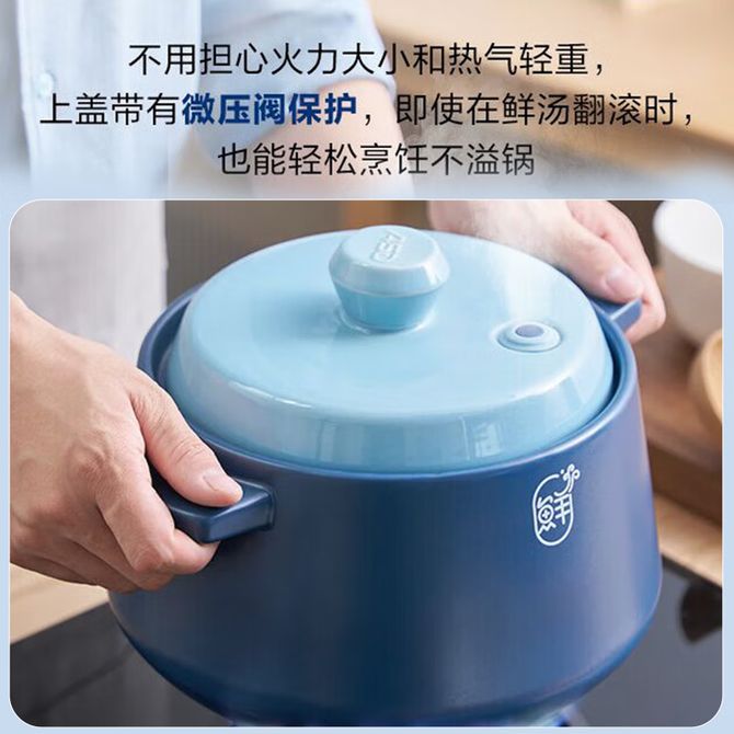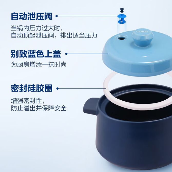 【该款为单个5L鲜陶系列•微压煲,详情共用】进口锂辉石,耐冷热不易裂,专利微压阀,快煮更安全