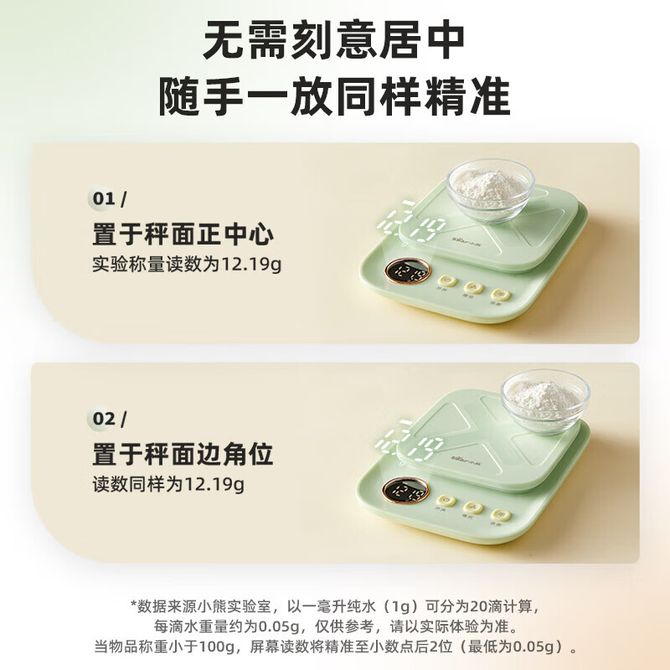小熊 厨房电子秤 薄荷绿色迷你厨房秤 高颜值家用厨房电子秤食物秤烘焙称克数秤 DZC-D01K5绿色 【该款为单个薄荷绿色厨房电子秤,详情共用】0.05g精准称重,5kg大量程,一键去皮置零,单位轻松切换,多场景适用 兑换价格 3500 里程 会员卡别 终身白金卡 白金卡 金卡 银卡 普通卡 儿童卡 服务 由 广西桂雅文化传媒有限公司 发货并提供售后 颜色: 其他 购买数量: 件 库存件 配送地址: 立即购买 加入购物车 成功添加到购物车 关闭 购物车共有 种商品 总金额为: