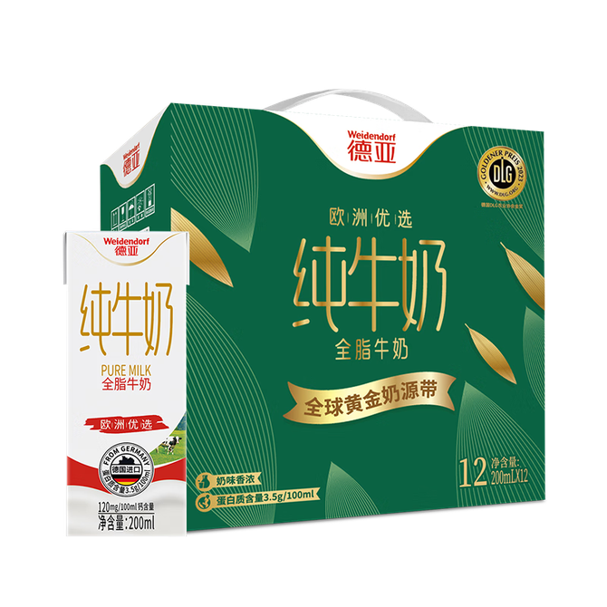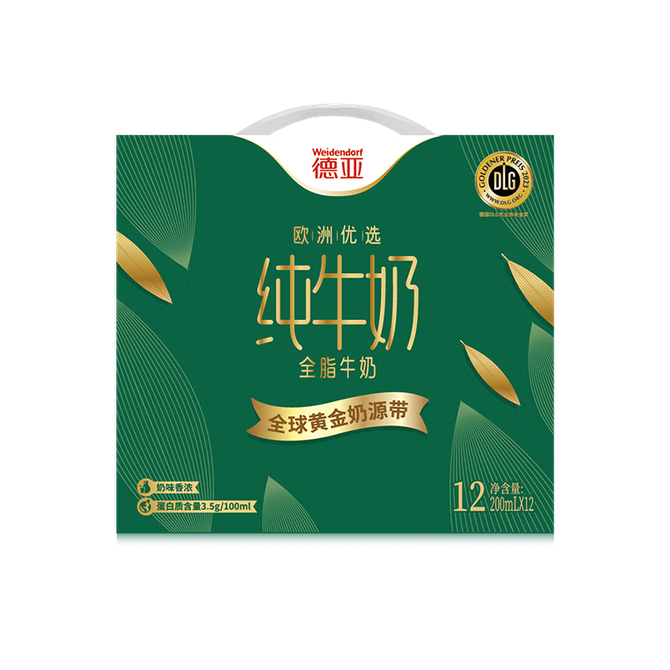 德亚 欧洲优选(黄金奶源带)全脂纯牛奶200ml*12礼盒 欧洲优选(黄金奶源带)全脂纯牛奶200ml*12礼盒 兑换价格 3500 里程 会员卡别 终身白金卡 白金卡 金卡 银卡 普通卡 儿童卡 服务 由 多宝商城 发货并提供售后 规格: 礼盒 购买数量: 件 库存件 配送地址: 立即购买 加入购物车 成功添加到购物车 关闭 购物车共有 种商品 总金额为: 组合销售 产品介绍 产品规格 售后服务 产品咨询 发现好货 蒙牛 特仑苏纯牛奶苗条装250ml×12盒 2900 里程 三元 经典小方白全脂纯牛奶250ml*24盒牛奶 整箱 3400 里程 伊利金典纯牛奶250ml*12盒整箱 2200 里程 伊利 金典纯牛奶整箱 250ml*12盒 3.6g乳蛋白 原生高钙 礼盒装 1800 里程 特仑苏 新日期纯牛奶250ml*12盒 3.6g乳蛋白 礼盒装 京东/顺丰发货 2400 里程