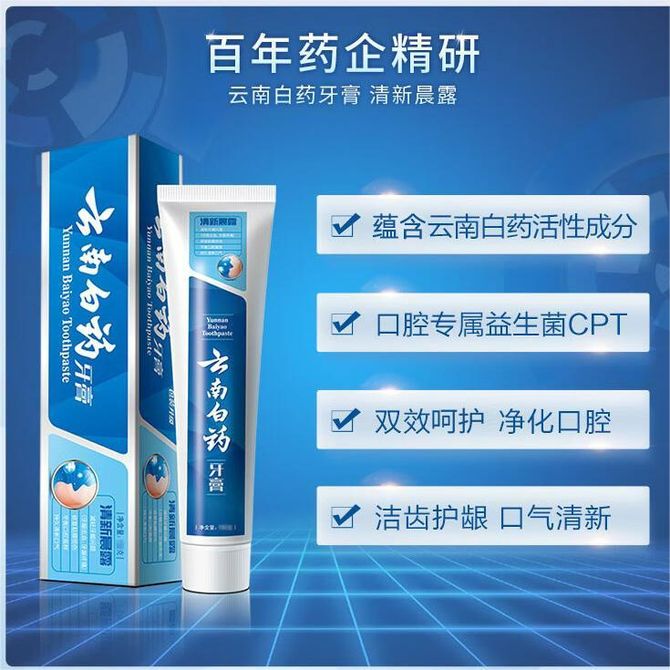 蕴含云南白药活性成分,口腔专属益生菌CPT,双效呵护,净化口腔,洁齿护龈,口气清新