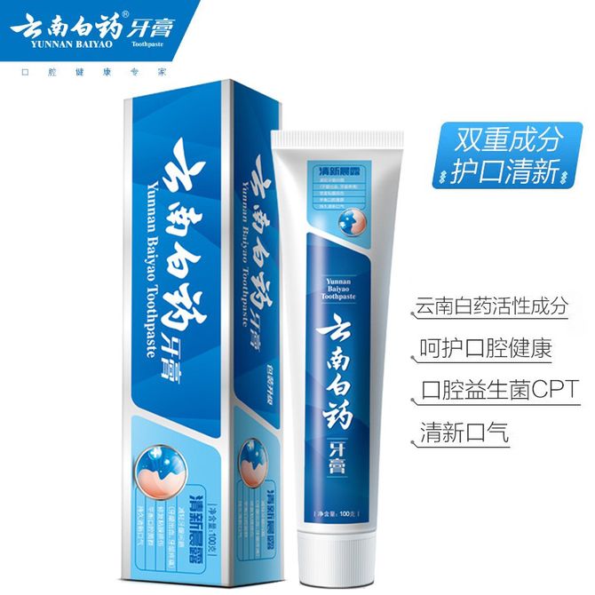 云南白药 牙膏 益优清新牙膏(清新晨露型)100g 单支装 双重养护清新口气洁齿护龈益生菌牙膏