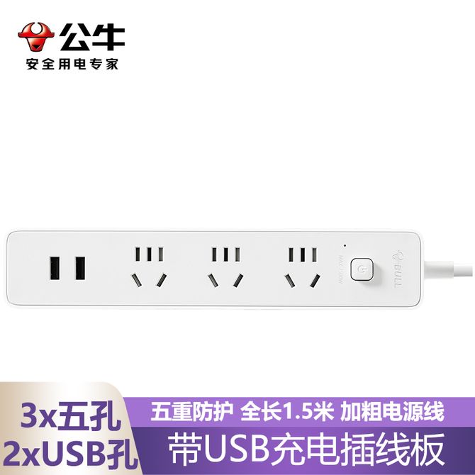 公牛(BULL) 新国标USB插座位插口2位USB接口总长1.5M 插排/排插/拖线板UUA-123 3x五孔+2xUSB孔 带USB充电插线板 全长1.5米 加粗电源线 五重防护 兑换价格 2400 里程 会员卡别 终身白金卡 白金卡 金卡 银卡 普通卡 儿童卡 服务 由 广西自贸区京通桂达科技发展有限公司 发货并提供售后 插排线: 有线 插位: 4插位 购买数量: 件 库存件 配送地址: 立即购买 加入购物车 成功添加到购物车 关闭 购物车共有 种商品 总金额为: