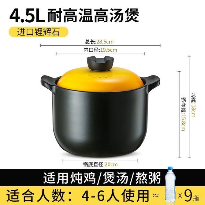【该款为单个4.5L汤煲·蜜黄,详情共用】进口锂辉石,高温烧制,干烧不裂,球形锅身,节能储热,陶瓷釉面,不粘易洁