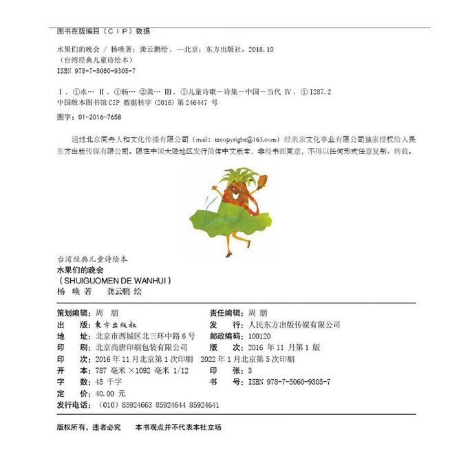 图书 杨唤/著,龚云鹏/绘《水果们的晚会》东方出版社图书