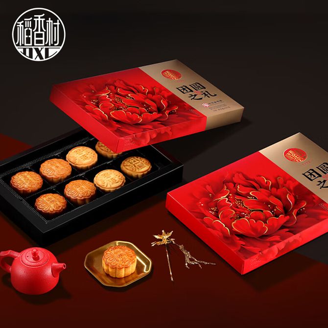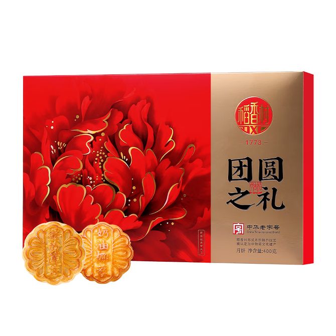 稻香村 月饼礼盒团圆之礼400g传统豆沙五仁月饼蛋黄莲蓉糖醇豆沙月饼【8饼5味】
