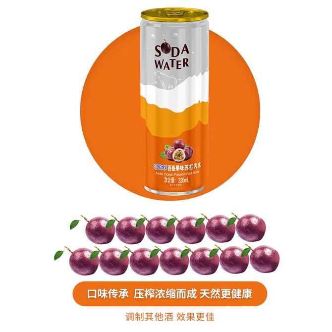 北冰洋百香果味苏打汽水330ml*24罐