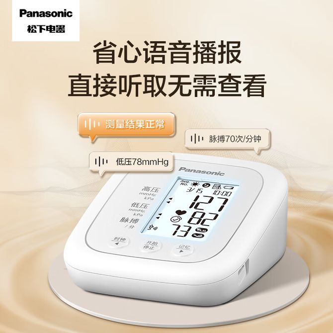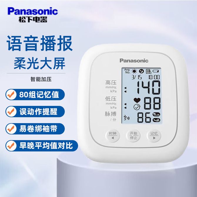 松下/Panasonic 电子血压计家用上臂式高血压测量仪智能语音播报血压仪背光大屏测压仪BU-200W