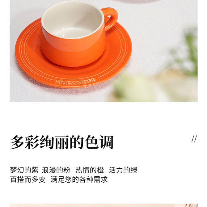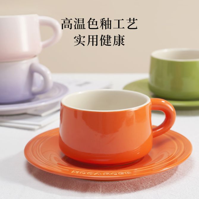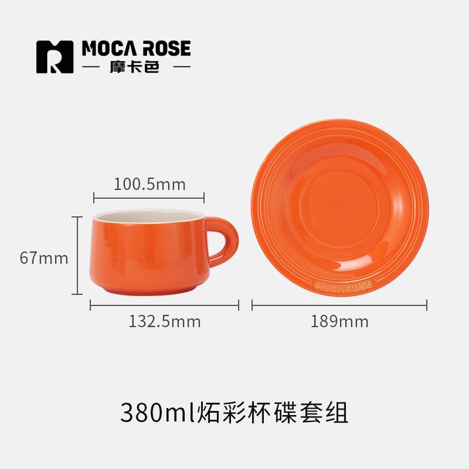 摩卡色 马克杯碟套装炻瓷咖啡杯高级感家用多巴胺水杯380ml-柿子橙